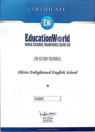 Glory Galore: Olivia Enlightened English School, a C.B.S.E. Co-EducationalSchool, Bhimbhar, Madati, Darjeeling is all set to muster more that would further broaden the royal road of its accomplishments. The school with a multihued crown of repute and recognition has added one more glorious feathers, recently. It has been ranked as Siliguri's No. 1 Co-Ed Day School, Indian School Rankings 2019-20, conferred upon by none other than, the impeccable, Education World. The chief architects of this Pyrrhic victory, the chairman, Mr. Tapan Ghosh, and the Executive Director, Mrs. Sutapa Nandi credit this success as a collaborative venture of the Olivian family, where the students, the teachers, and the staff put their head together to steer through the penumbra with unflinching courage and zealous vision. The school, be it academic fronts, or in terms of extracurricular involvement, has excelled so far with trophies and triumphs, and has inimitably registered its very presence in Siliguri's educational scenario. And in times to come, it's expected too to carve its niche in the globalcanvas.